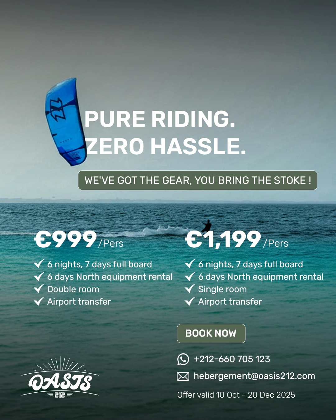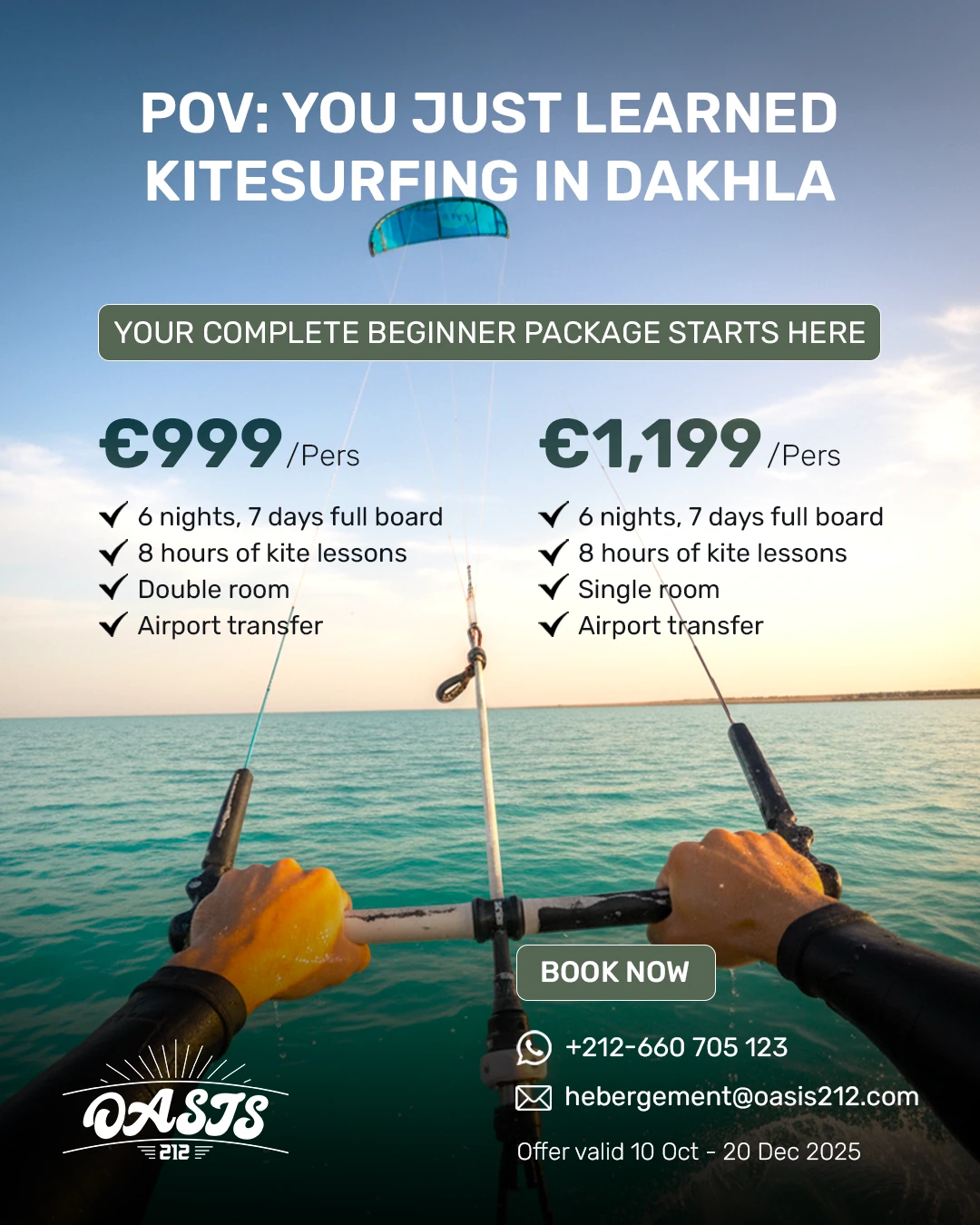 Discover an Oasis of desert paradise where the sand meets the sea in one of the world 's most famous kitesurf locations. Make the most of what’s on offer with an action packed, activity filled adventure holiday.